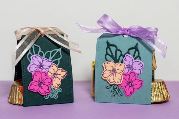 When you need a favor for a bridal shower or banquet table make Tag Treats with cardstock to match your theme. The pop of color on the table will add to your décor, and your guests will love the candy treats inside!
