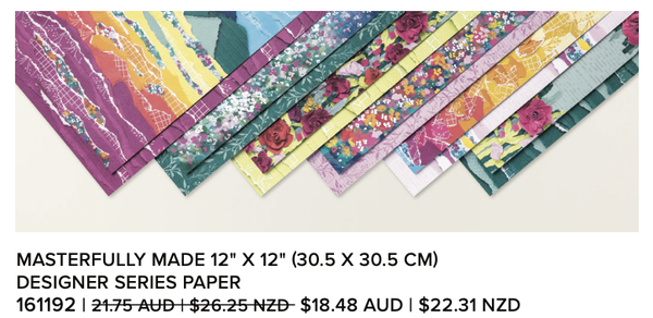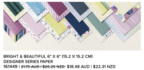 Nancy's Tip: If you want to purchase a suite that includes one of these papers, purchase the DSP, stamp set & cutting tool Bundle, and any embellishment in the suite separately to get the best discounted price!